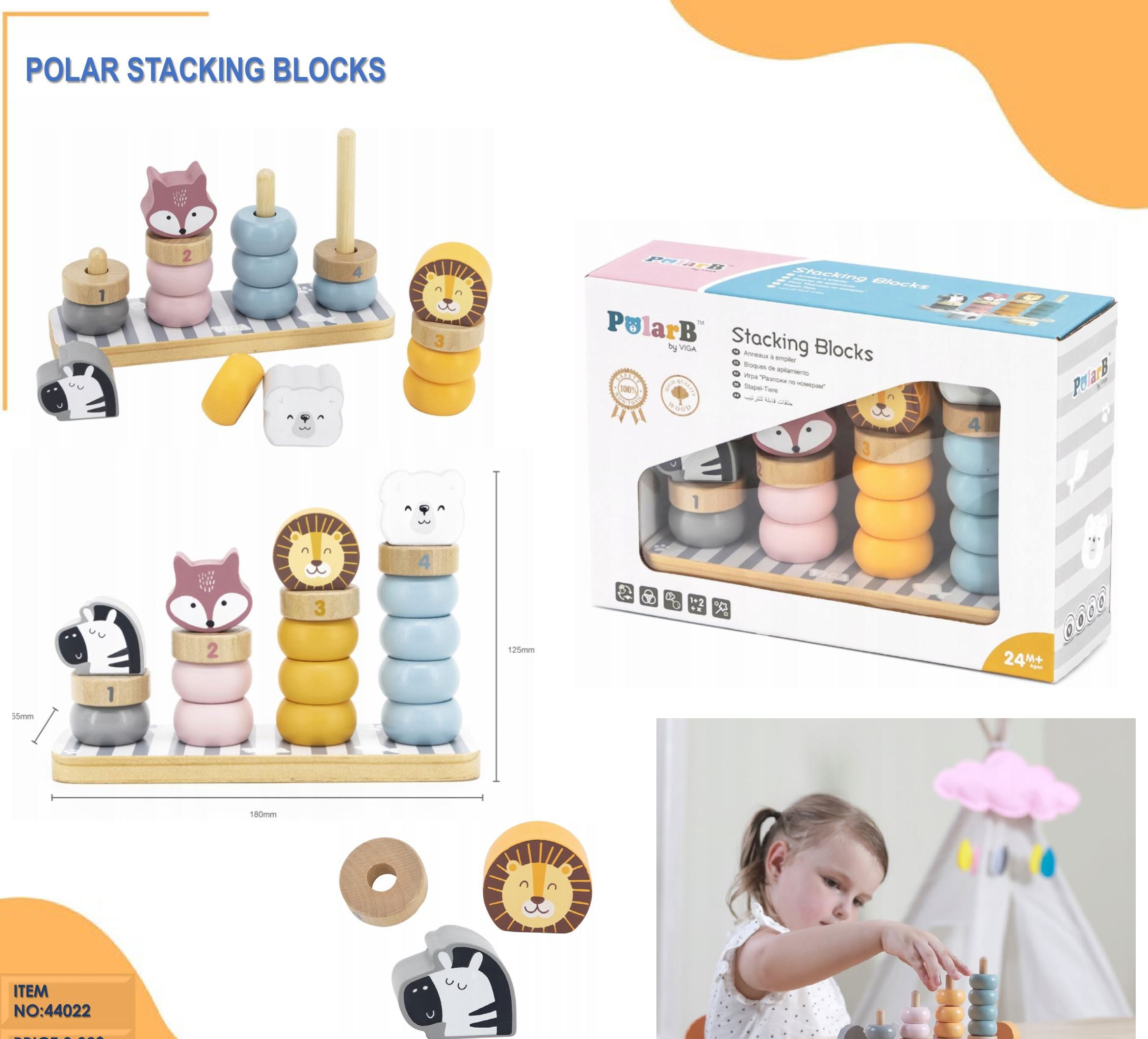 Premium quality wooden blocks designed for toddlers aged 2 years and up. This colorful set features Arctic-themed designs that can be stacked, sorted, and arranged in countless ways—perfect for open-ended play.