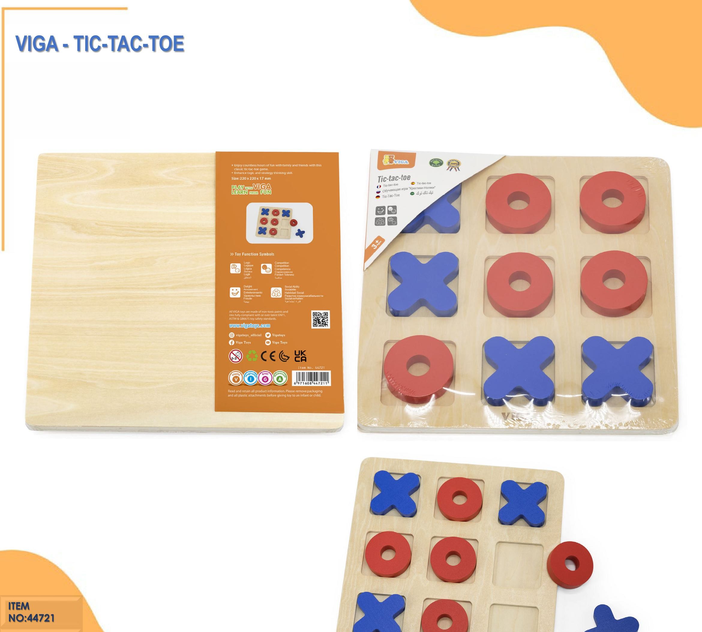 Bring back the classic game of Tic-Tac-Toe with a fun, durable twist! The VIGA Wooden Tic-Tac-Toe Game features a beautifully crafted wooden board and chunky red “O” and blue “X” pieces that are easy for small hands to grip and place.